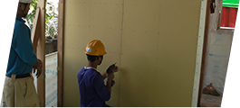 - 内装工事の基本から学びます 内装工事の基本からボード貼り、断熱材施工、天井造作等、一連の内装作業を学びます。